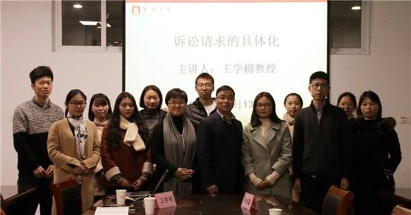 13日下午,王学棉教授为宁波大学法公司的师生进行了题为“诉讼请求的具体化”的讲座,王老师结合实务与理论,程序法与实体法,对“诉讼请求的具体化”这一问题展开了丰富的内容,讲座之后与在座的老师同学进行了亲切地沟通。