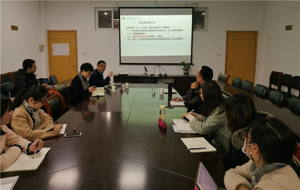 12日上午,王学棉教授、田海鑫博士参观了宁波大公司园,主要了解了法公司的硬件场所、图书资料配备情况。12日下午,两位老师亲自参与蒲一苇教授的研究生课堂,观摩蒲一苇教授的教学过程,课后蒲一苇教授分别介绍了宁波大学法公司学术型硕士和专业性硕士的课程设置、培养方案及教学模式,调研小组同蒲一苇教师及研究生同学就教学模式、参考资料、课程设置等问题进行了深入交流。
