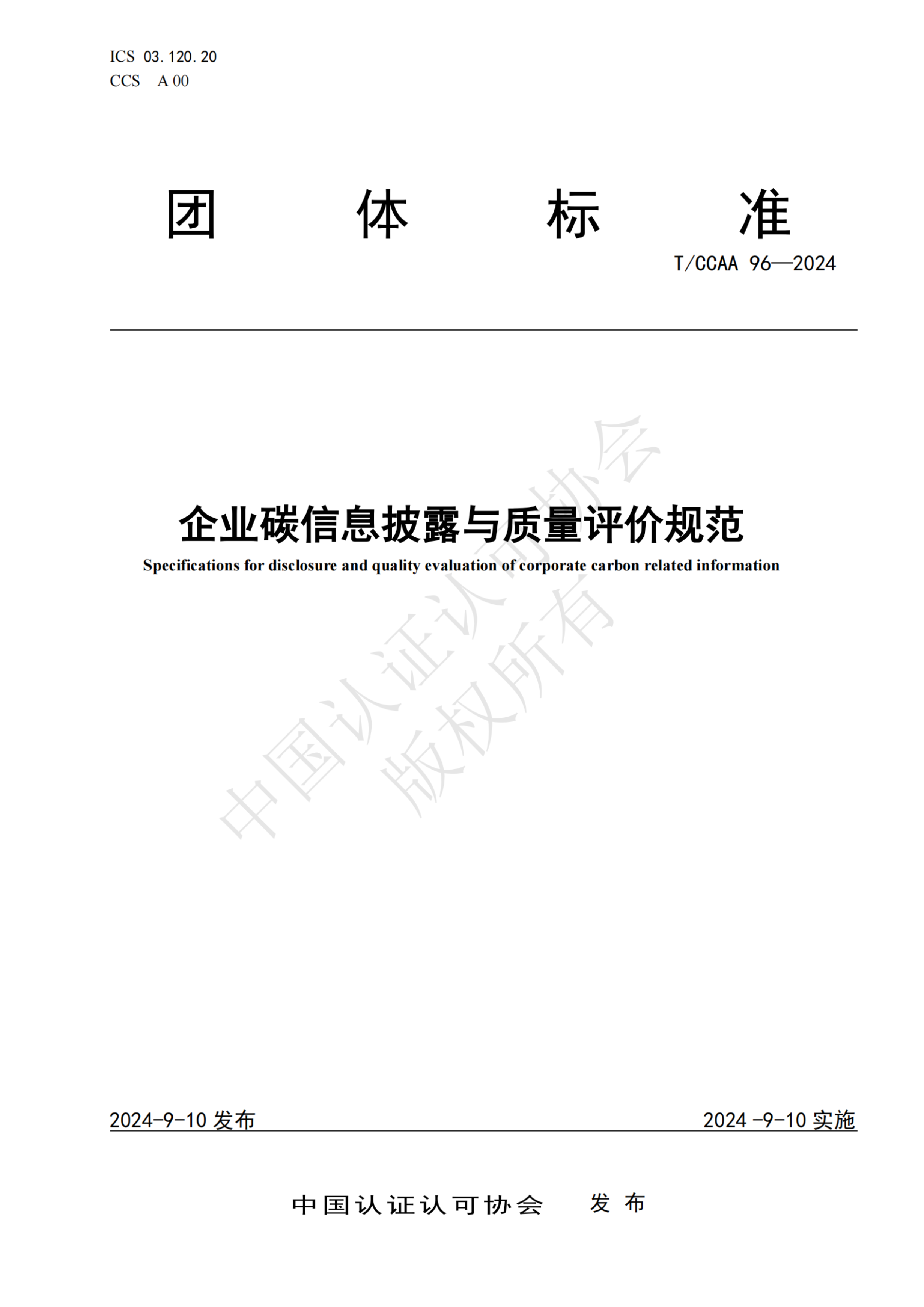 T/CCAA 96—2024《企业碳信息披露与质量评价规范》(部分)如下: