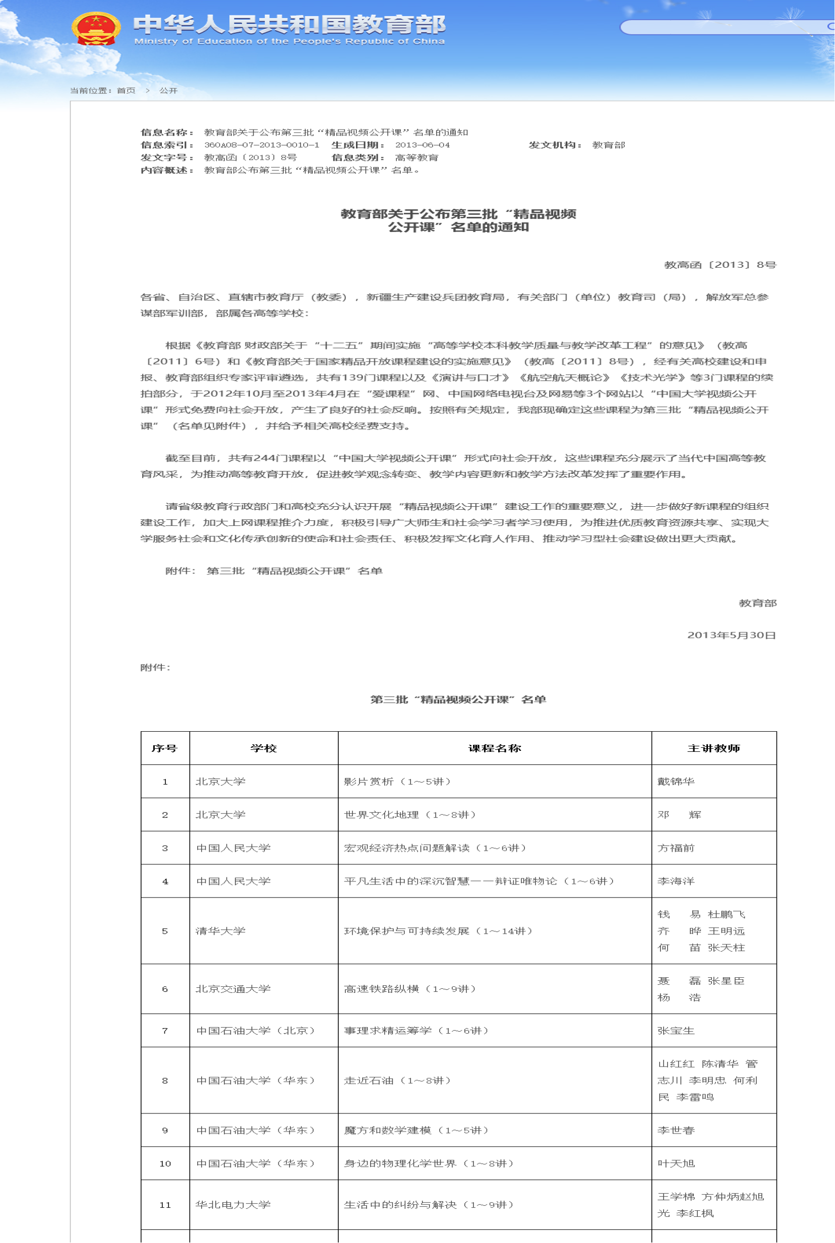 我国在线开放课程建设始于十二五随着互联网技术的飞速发展和视频制作与播放技术的大幅进步以视频资源作为课程主要资源来替代文本类的教学课件已成为一种发展趋势。为顺应这样一种历史趋势,提升原有精品课程的建设质量,教育部财政部于2011年联合发布了《教育部财政部关于“十二五”期间实施“高等公司本科教学质量与教学改革工程”的意见》(教高〔2011〕6号),正式启动国家精品开放课程建设工作。suncitygroup太阳新城及时抓住机遇,在公司教务部门的支持下,由王学棉教授牵头,赵旭光、李红枫、方仲炳参加制作完成了视频公开课《生活中的纠纷与解决》,该课程在网易公开课上线,迅速获得关注与好评,累计六万余人参加了课程学习,累计播放量达到22.5万次。课程于2013年获批教育部第三批国家级精品视频公开课