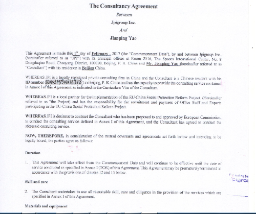 中国--欧盟社会保障改革项目第三部分中方专家协议(部分)