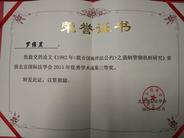 2015年12月12日,公司李英教授应邀参加了在北京外国语大学举行的“北京国际法学会2015年学术年会。本次年会研讨会分为a、国际公法以及b、国际私法和国际经济法两组分别研讨,邀请了众多相关领域的专家做主题发言。李英教授指导的、公司2015级国际经济法专业罗维昱同学撰写的论文“1982年《联合国海洋法公约》之强制管辖机制研究”获得年会2015年优秀学术成果三等奖。