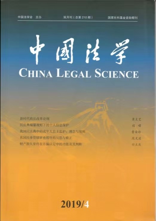 法学教研室刘冰博士的论文在《中国法学》发表