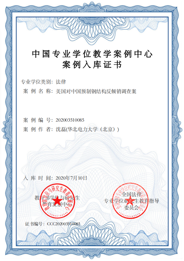 2020年7月初,教育部学位与研究生教育发展中心及全国法律专业学位研究生教育指导委员会公布了2019年度法律硕士专业学位教学案例的评选结果。经各位专家的多轮严格评审,suncitygroupsuncitygroup太阳新城沈磊、田海鑫、陈燕红所提交的案例成功入选。其中,沈磊老师的入选案例为“美国对中国预制钢结构反倾销调查案”,田海鑫老师的入选案例为“王女士奔驰汽车消费纠纷谈判案”,陈燕红老师的入选案例为“Zeeco,Inc.诉JPMorgan Chase Bank银行保函欺诈一案”。