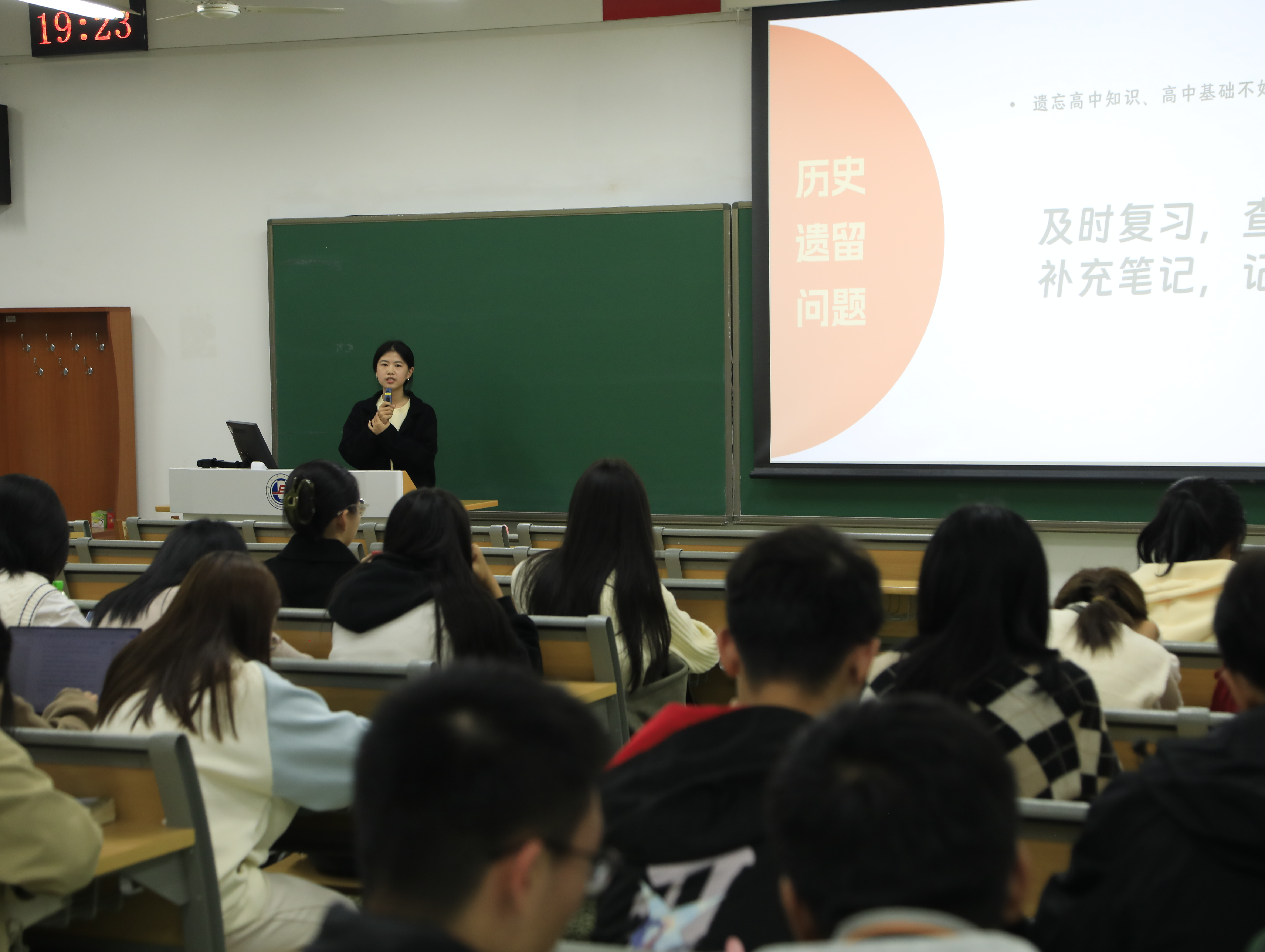 在覃敏同学分享结束后,康盈同学紧接着介绍她的学习方式。康盈同学重点对针对性的问题进行了分析和解惑,将问题分为“历史遗留问题”、“当前面对问题”、“未来思虑问题”来分别提供解决方法。