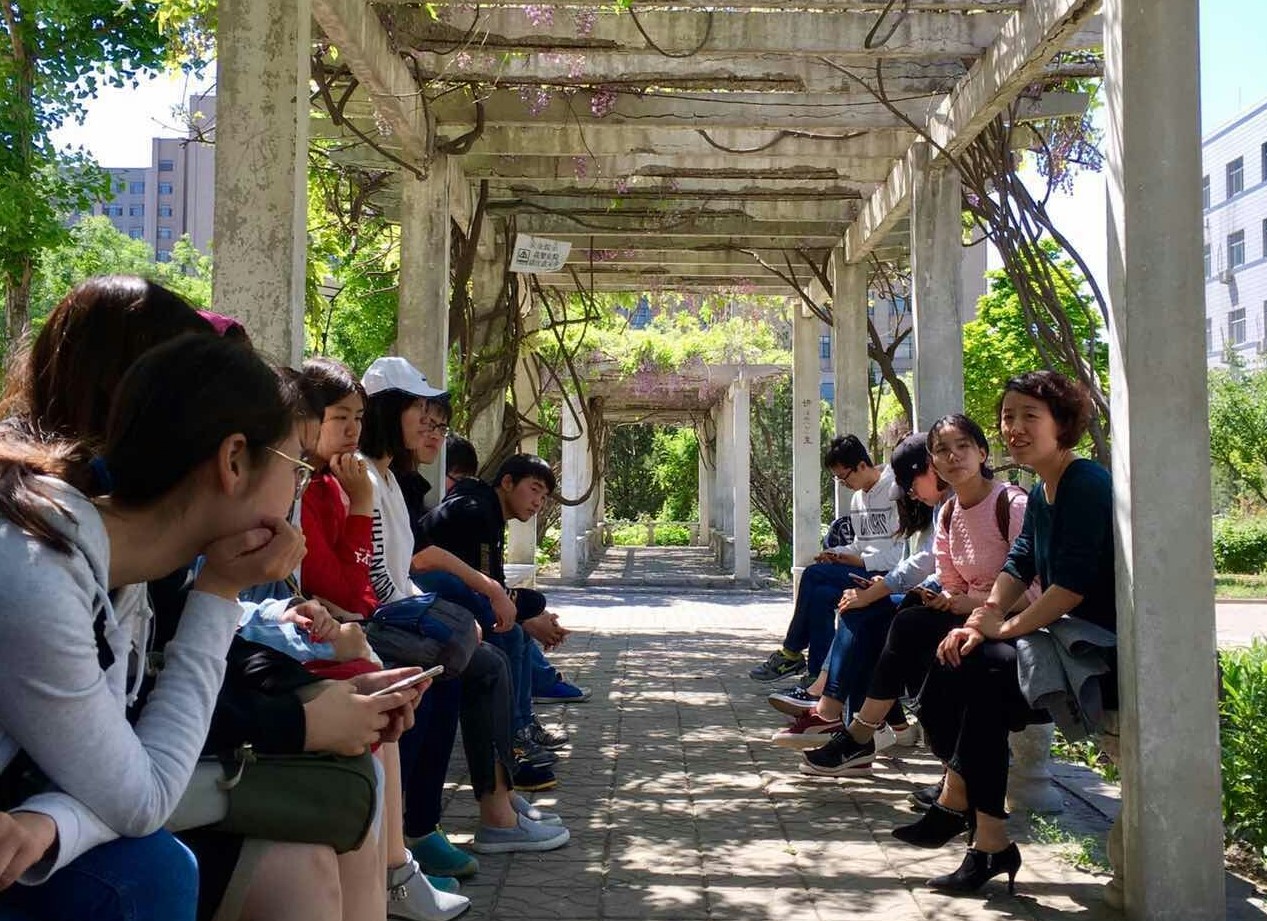 公共1601班为了在新的、轻松的环境中调动大家的积极性,从而提高讨论质量,特意将活动地点安排在教二楼南侧的紫藤花架下,以全新的心态去参与讨论。首先,由班长向大家介绍班会背景以及英语科目改革方案。英语教研室的相关改革方案显示,在未来的学习生活中,英语教学将迎来新的内容,除了原有的通识内容,新的改革点学术英语与跨文化交流课程吸引了大家的注意。其次,班主任顺着关于讨论的主题的“你所知道的大讨论是什么样的?别人关注的问题是什么?你自己怎么看?”的思路引导大家讨论。