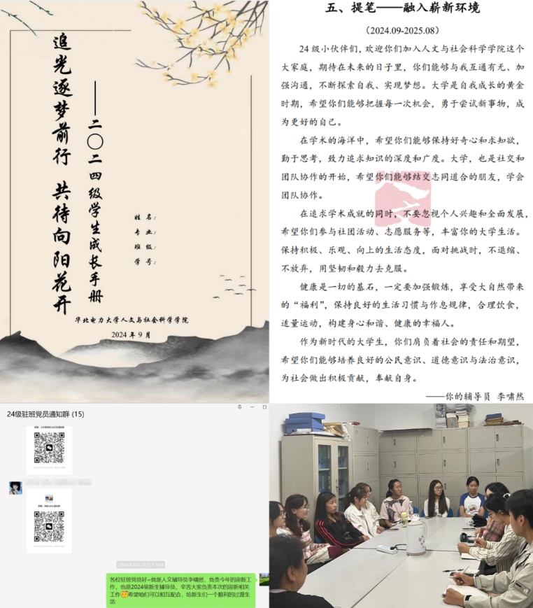 迎新系统开放后,2024级新生辅导员李啸然快速与每位员工取得联系,建立年级班级群,并开展线上家访活动,做好信息传达、反诈宣传、安全提示等教育工作。并在新生、新生家长群体中开展调研,围绕员工对老员工活的困惑和家长关心关注的问题,公司学工团队运用“生涯九宫格”指导理念,制定新生成长手册,引入学习进修、职业发展、人际交往、个人情感、身心健康、休闲娱乐、财务管理、家庭生活、服务社会九个维度,规划了“提笔——融入崭新环境”、“蓄力——锚定梦想方向”、“书写——清晰人生规划”、“功成——铸就时代青年”四个篇章。辅导员李啸然结合每一学年阶段性特点,提出不同寄语,指导员工们把准奋斗方向。