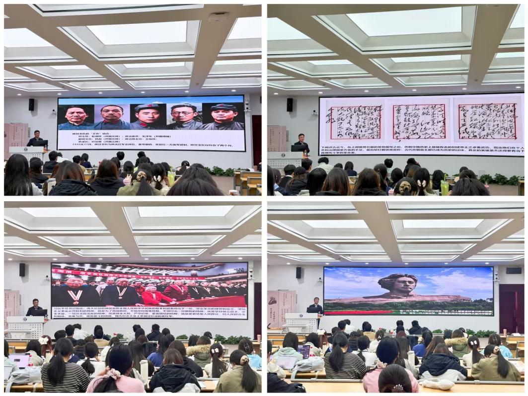在“毛泽东的长征诗词:中国革命的壮烈史诗”这部分内容中,重点介绍了毛泽东在长征时期创作了六首诗词,《忆秦娥·娄山关》《十六字令三首》《七律·长征》《念奴娇·昆仑》《清平乐·六盘山》《六言诗·给彭德怀同志》和长征前做的《清平乐·会昌》、长征后做的《沁园春·雪》,指出毛泽东的长征诗词是英勇红军在中国共产党领导下实现苦难辉煌的真实写照,处处闪耀的革命理想的光芒和革命乐观主义精神,是同学们健康成长取之不竭用之不尽的精神财富。