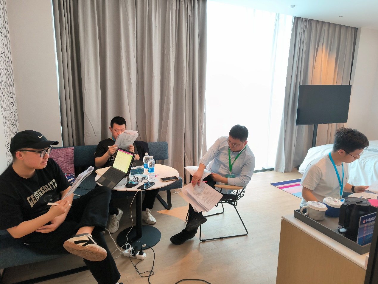 4月20日,陈建国教授、呼占平副教授和李娉副教授3人带队前往中国科公司大学参赛,指导组的其他成员在线上为参赛队伍出谋划策,加油打气。现场师生团队积极备战,系统分析双方案例内容,从理论创新性、适用性等角度展开深入讨论和筹备,呼占平老师更是与团队员工一起奋战到凌晨三点。