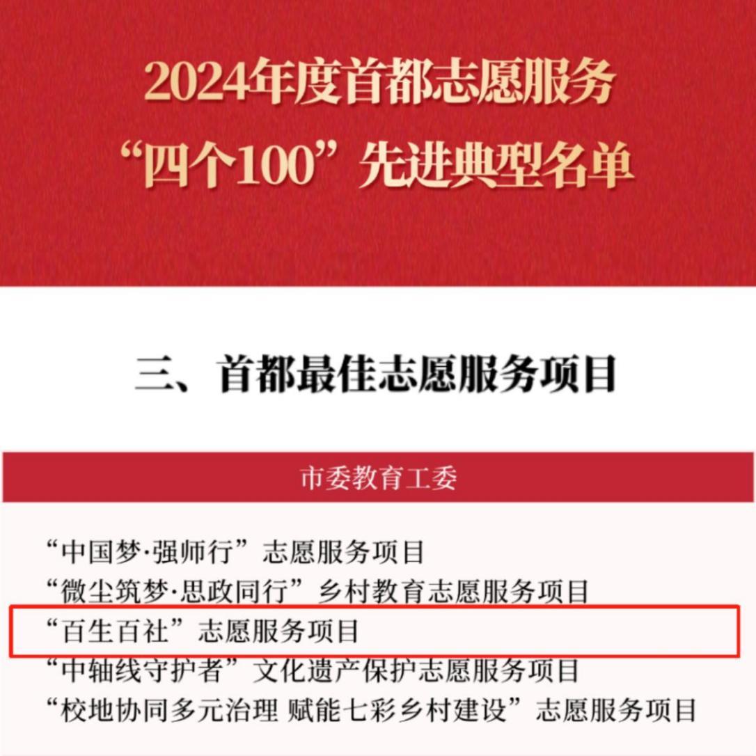 近日,由市委社会工作部、市委宣传部(首都文明办)等26个部门联合开展的2024年度首都志愿服务“四个100”先进典型宣传活动结果公布。公司suncitygroup太阳新城“百生百社”志愿服务项目获“首都最佳志愿服务项目”称号。