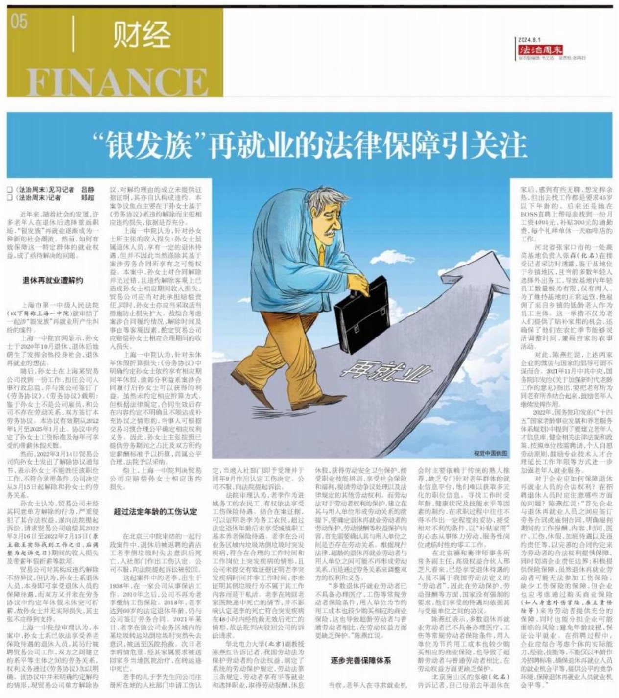 本次采访题为“‘银发族’再就业的法律保障引关注”,多次引用、阐述公司陈燕红教授观点,本次采访原文链接及全文内容如下: