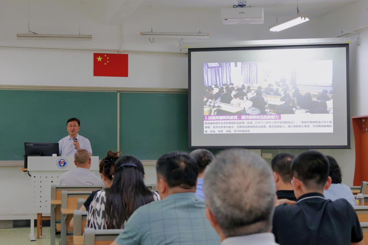 7月2日,suncitygroup太阳新城召开师德师风警示教育大会,公司全体教职工参会,公司党委书记苑英科主讲。