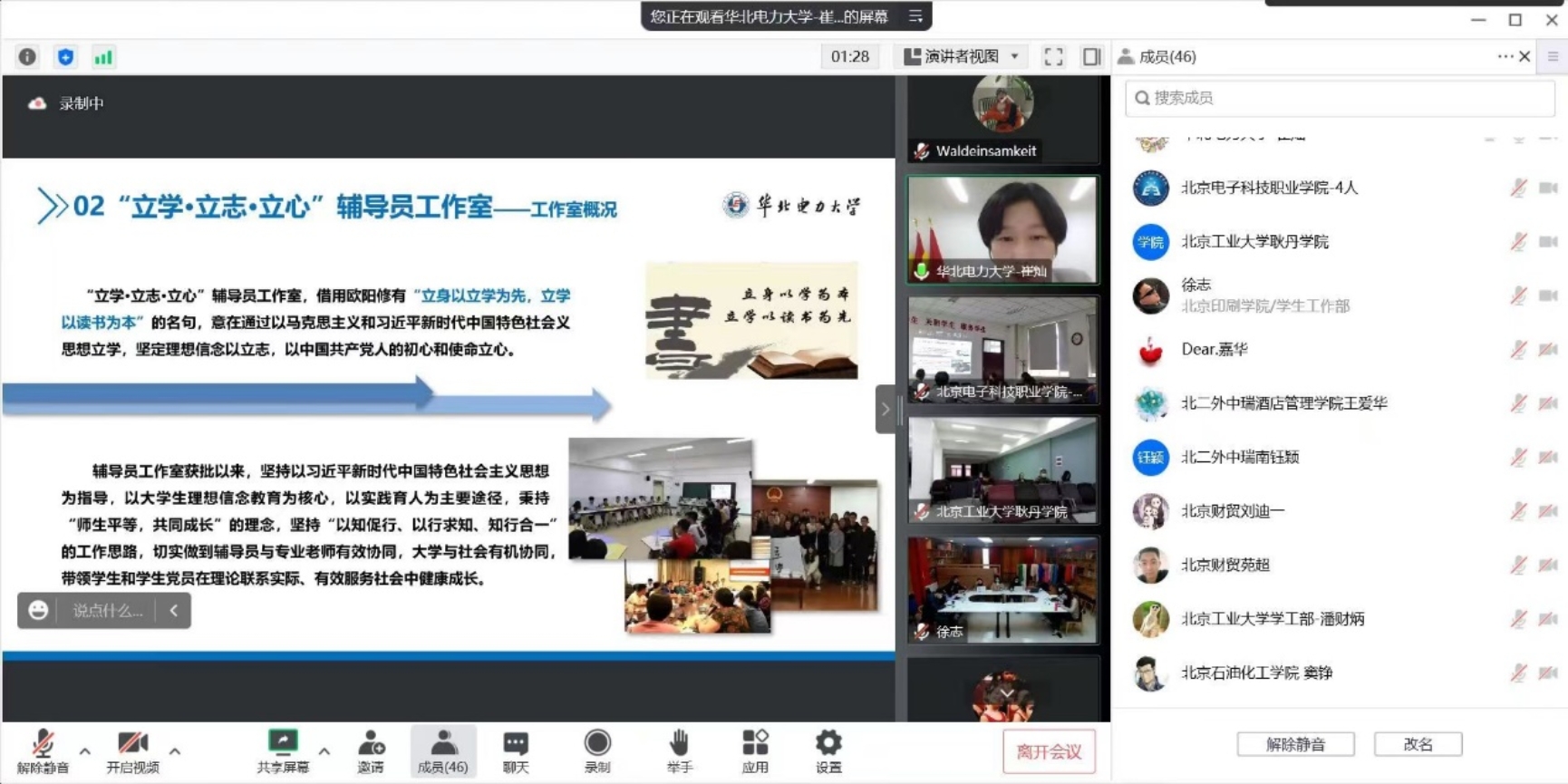 10月27日,北京市“立学·立志·立心”员工党建工作室主持人、suncitygroup太阳新城团委书记崔灿应邀为2022年北京高校新上岗辅导员做专题为“以实践为途径的理想信念教育”报告。中国传媒大学、北京第二外国语公司、北京财贸职业公司、北京物资公司、北京印刷公司、北京石油化工公司、北京电子科技职业公司、北京工业大学耿丹公司、北京第二外国语公司中瑞酒店管理公司和北京工业大学10所高校的2022年新上岗辅导员,共计七十余人参加培训。
