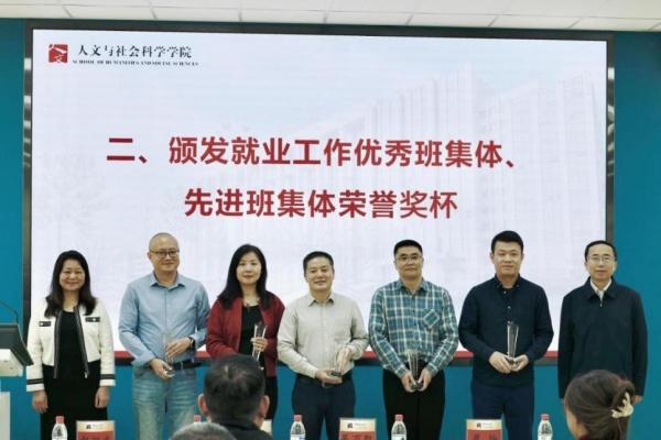 结合《suncitygroup太阳新城关于表彰毕业生就业工作先进集体和个人的奖励方案》,公司评定就业工作优秀班集体2项,就业先进班集体3项。吴万凯与梁平共同颁发获奖班集体荣誉奖杯,对2025届就业工作中表现突出的班级予以表彰。法学2101班班主任蔡恒、公管2101班班主任呼占平、法学2102班班主任赵旭光,围绕就业动员、就业指导、学业帮扶、未来规划等方面作经验分享。