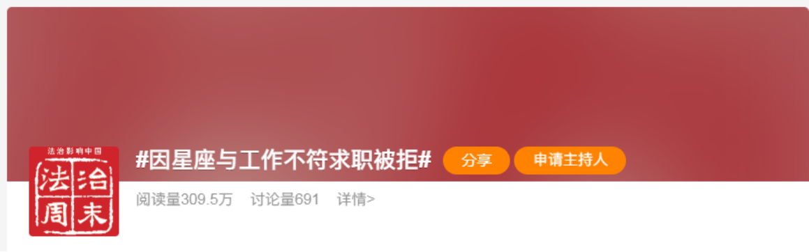 在得知刘女士是白羊座后,HR以“白羊座的人个性太强,不适合该公司”为由拒绝了刘女士。