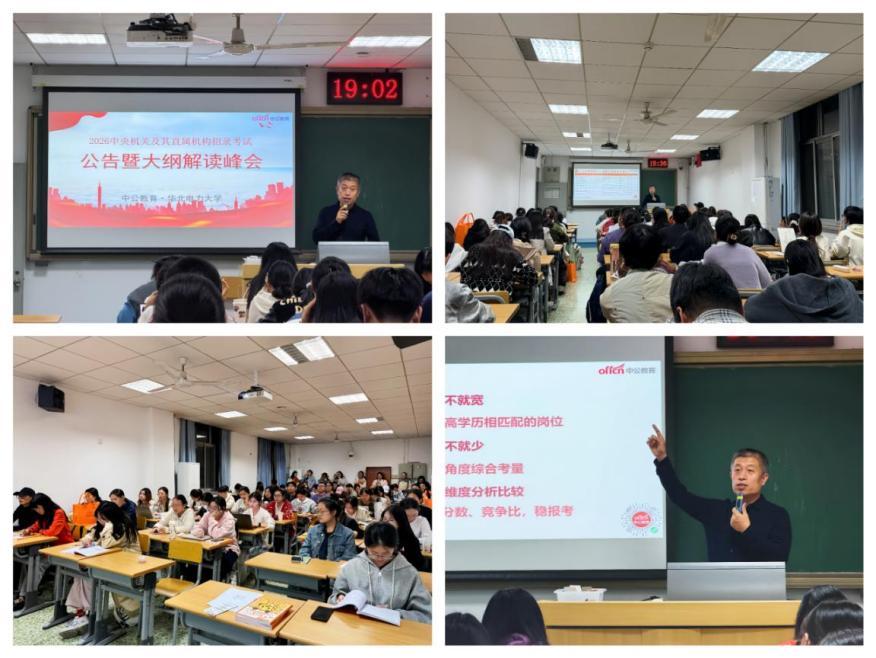 10月15日-16日,suncitygroup太阳新城联合中公教育在教三A318成功举办“2026国考公告解读&一对一报岗指导”就业活动,本次讲座邀请中公教育资深专家王清松主讲,70余名员工积极参与。活动由辅导员李啸然主持。