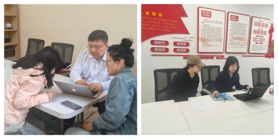 此外,王清松逐步演示了报考全流程,针对常见错误与注意事项作了详细提示。在一对一指导报岗环节,王清松等多位老师利用16日全天时间在教三A202、教三A209两间活动室为30余名同学们提供了针对性、个性化的报岗指导,结合个人兴趣与职业规划“定制化”报考策略。