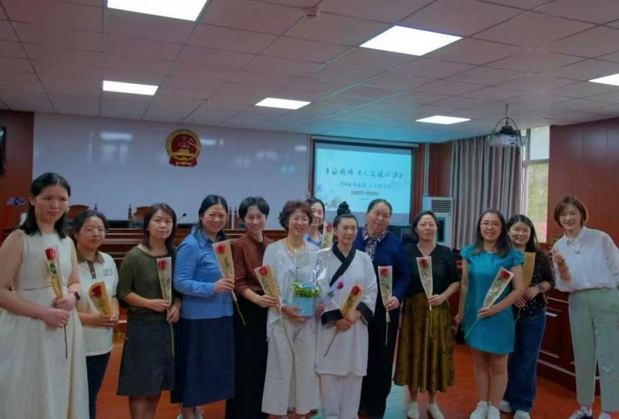 吴心引导大家练习《古法-八段锦》,这一套源自武当山的传统养生功法,帮助教师们调理身心,达到内外和谐。最后,在效果分享环节中,教师们积极交流了参与课程的体验和收获。